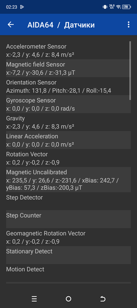 Голос собеседника в динамике не очень громкий, но вполне разборчивый. Вибромотор самый обычный, средний по мощности. Все необходимые встроенные датчики, вплоть до гироскопа, на месте.