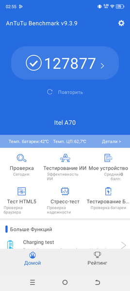 | AnTuTu (v9.x) (больше — лучше) | 127877 | 683485 | 602528 | 536193 | 397188 |