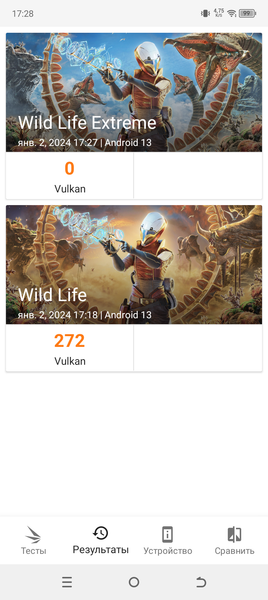 | 3DMark Wild Life Vulkan (больше — лучше) | 272 | 4505 | 4186 | 2450 | 1327 |