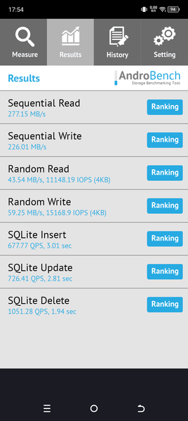 Результаты теста AndroBench на скорость работы с памятью: