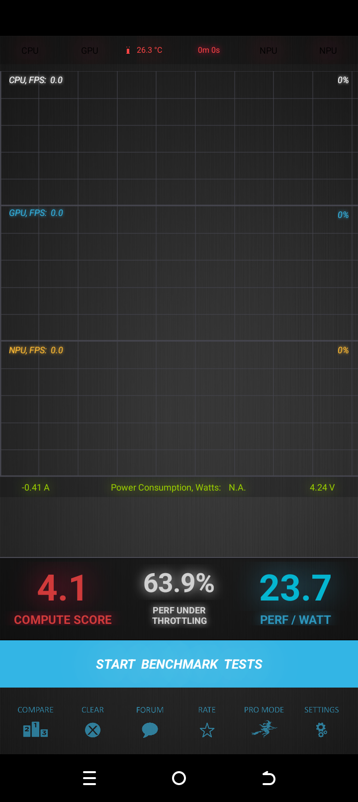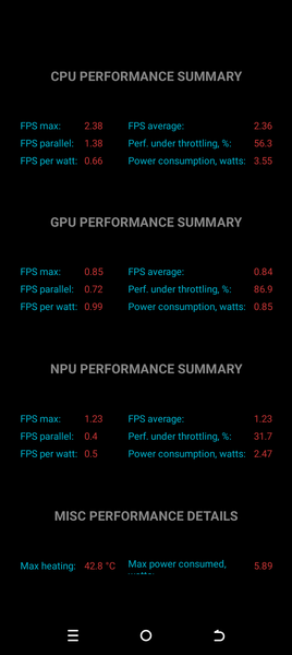 Тест на снижение производительности при нагреве мы проводим с помощью программы Burnout Benchmark, которая позволяет нагружать CPU, GPU и NPU: