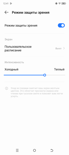 В принципе, яркий свет может приводить к нарушению суточного (циркадного) ритма (см. статью про iPad Pro с дисплеем 9,7 дюйма), но все решается снижением яркости до низкого, но еще комфортного уровня, а искажать цветовой баланс, уменьшая вклад синего, нет абсолютно никакого смысла. Эту настройку можно использовать для коррекции цветового баланса. Результат после ручной коррекции (ползунок как на снимке выше) хороший, так как цветовая температура становится достаточно близкой к стандартным 6500 К, а отклонение от спектра абсолютно черного тела (ΔE) остается ниже 10, что для потребительского устройства считается приемлемым показателем. При этом цветовая температура и ΔE мало изменяются от оттенка к оттенку — это положительно сказывается на визуальной оценке цветового баланса. (Самые темные области шкалы серого можно не учитывать, так как там баланс цветов не имеет большого значения, да и погрешность измерений цветовых характеристик на низкой яркости большая.)