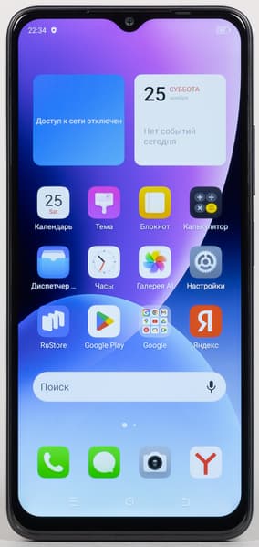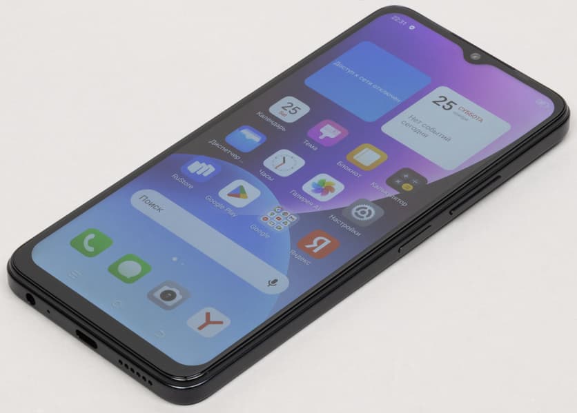Фронтальная камера одиночная, она установлена в каплевидном вырезе экрана — явный признак сверхбюджетной категории, почти во всех современных телефонах камера устанавливается за вырезом в матрице, что сводит к минимуму «мертвую зону» экрана.