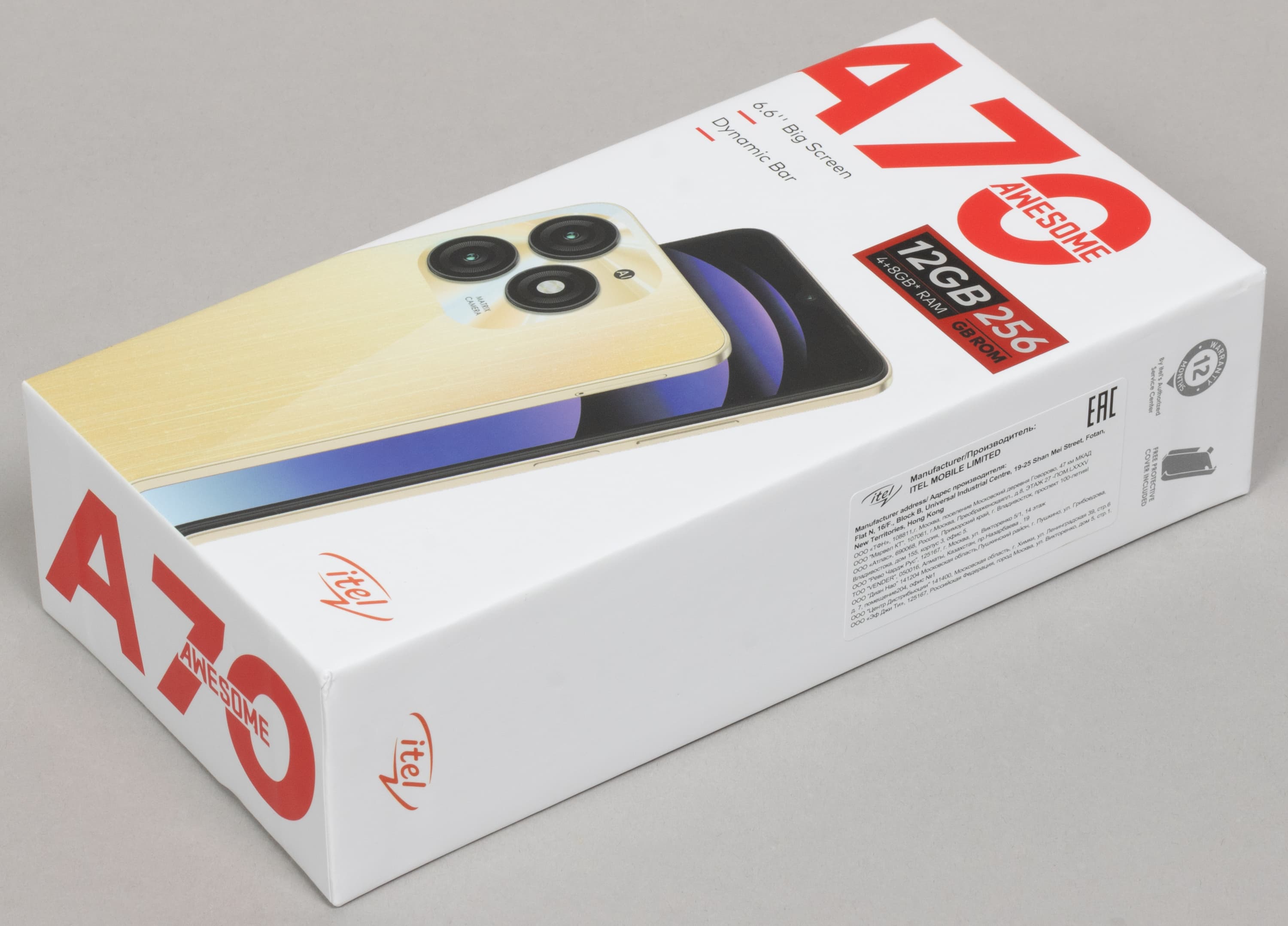 Itel A70 поставляется в картонной коробке со стандартным комплектом аксессуаров.