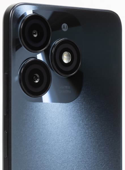 Смартфон Itel A70 имеет на тыльной стороне три больших симметричных стеклянных окошка, но снимающая камера лишь одна — с сенсором 13 Мп и объективом f/1,8. Есть фазовый автофокус PDAF, стабилизатора нет.