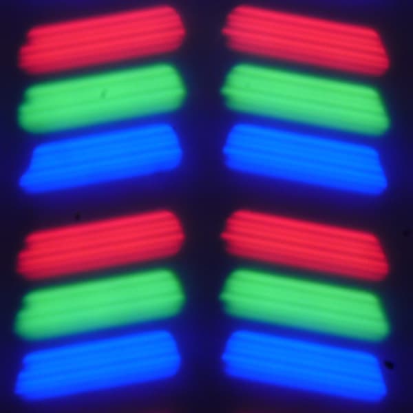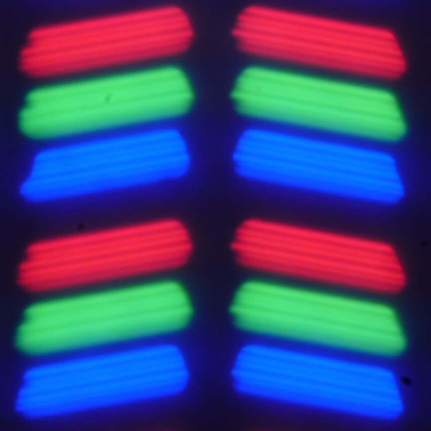 В данном смартфоне используется матрица типа IPS. Микрофотографии демонстрируют типичную для IPS структуру субпикселей: