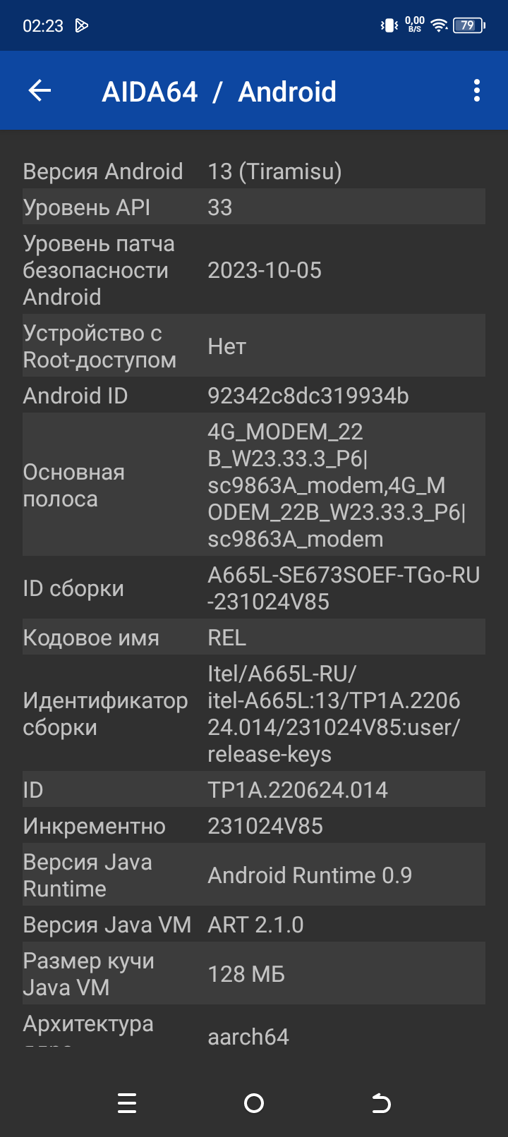 - Операционная система Android 13