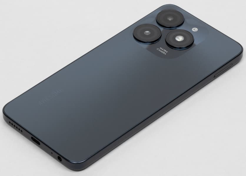 Материал корпуса - пластик, но смотрится так, словно задняя спинка из матового стекла с текстурированным покрытием. На такой поверхности не видны отпечатки пальцев, корпус практичный и не маркий. Боковая рамка не из металла, а тоже из матового пластика.