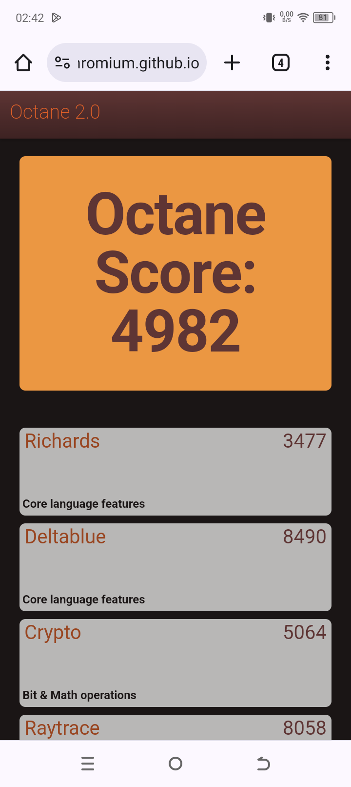 | Google Octane 2 (больше — лучше) | 4982 | 27796 | 29329 | 27070 | 19194 |