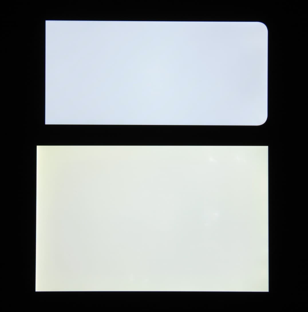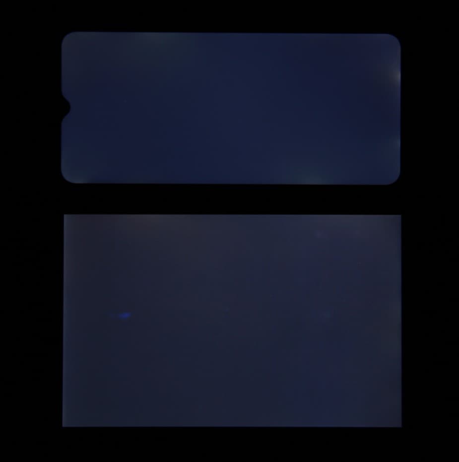 При перпендикулярном взгляде равномерность черного поля средняя (для наглядности яркость подсветки на смартфоне установлена на максимум):