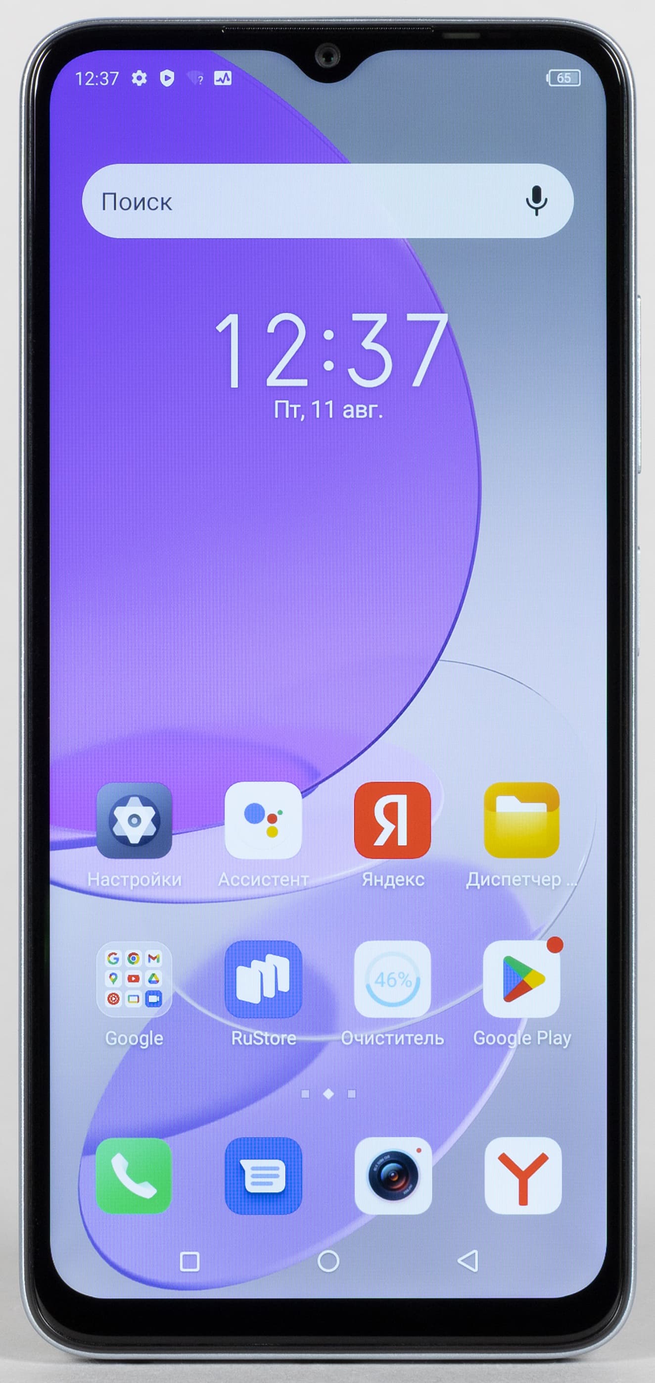 В комплекте со смартфоном идет соединительный кабель USB-C и сетевое зарядное устройство с максимальной выходной мощностью 10 Вт. Есть в комплекте и совсем простенький защитный кожух из твердого прозрачного пластика.