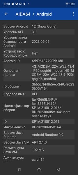- Операционная система Android 12