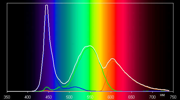 Спектры показывают, что светофильтры матрицы в умеренной степени подмешивают компоненты друг к другу: