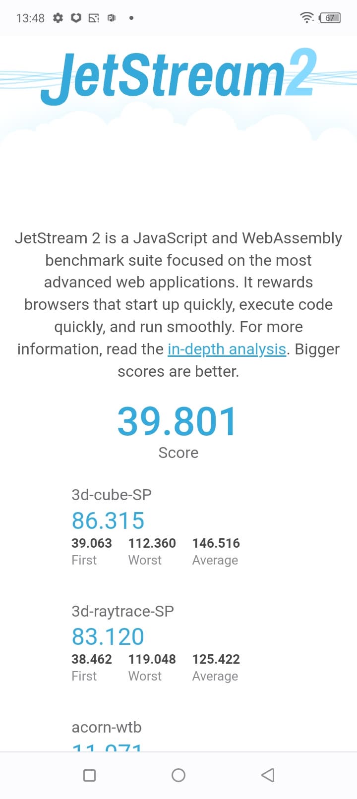 | JetStream (больше — лучше) | 40 | 50 | 59 | — | 20 |