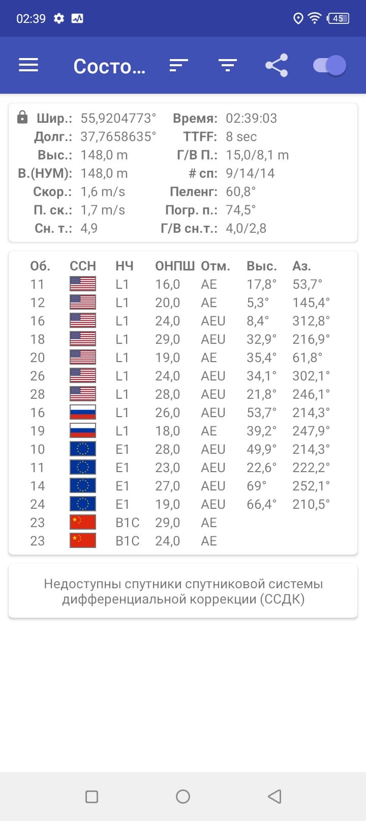 - GPS/A-GPS, Глонасс, Galileo, BDS
