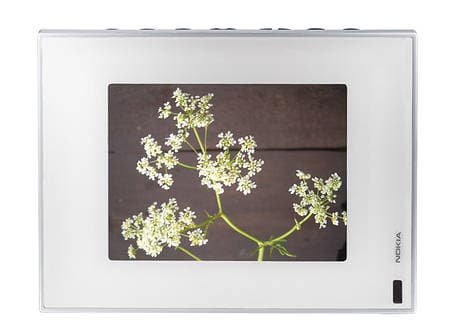 Но для начала пару слов о Nokia Image Frame: устройство оснащено 5,1″, дисплеем разрешением 320×240 с поддержкой 12-разрядной глубины цвета (4096 цветовых оттенков), поддерживает форматы JPEG и GIF. Для записи снимков в память предусмотрены протоколы IrDA, IrOBEX 1.3 и IrTranP, а также IrDA Object Get. В будущем планируется выпустить на рынок Nokia Image Frame SU-7 с возможностью установки SIM-карты и получения картинок по MMS.