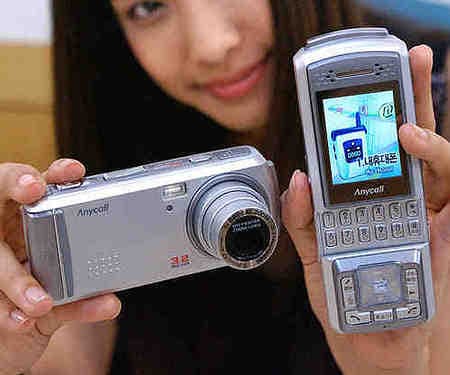 О встроенных камерах разговор особый — надо отметить, что интеграция цифровых камер сделала сразу несколько шагов вперед — к концу года уже можно говорить о том, что телефоны со встроенной 1,3-мегапиксельной камерой стали mainstream-решениями, а в некоторые телефоны, ориентированные на видеосвязь, устанавливаются по две камеры, с низким и высоким разрешением, соответственно; но 1,3 млн. пикселей — не предел, что и продемонстрировала Samsung, пойдя еще дальше. Компания начала с того, что выпустила телефон с 3-мегапиксельной камерой и 3-кратным оптическим зумом SPH-S2300 (на фото выше), продолжила анонсом телефона с 5-мегапиксельным сенсором (на фото ниже). Тайваньский производитель BenQ, входящий в клуб производителей, выпускающих телефоны с поддержкой 262144 цветов, смог побить рекорд по оптическому зуму, представив телефон с 5-кратным оптическим зумом, но рекорд по количеству пикселей пока остался непревзойденным, хотя Carl Zeiss в ближайший год-два грозится интегрировать аж 10 млн. пикселей! Сможет ли крохотная оптика сотовых телефонов обеспечить пристойное качество этих многомегапиксельных изображений — вопрос нетривиальный, да и что делать с многомегабайтными снимками, тоже знает пока что только Samsung, пообещавшая снабжать свои телефоны картами памяти емкостью 2 ГБ.
