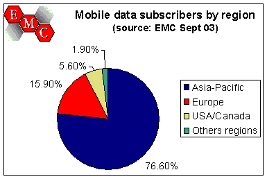 2003 год в целом был удачным для индустрии мобильной связи: по данным EMC Cellular Database, к ноябрю суммарное число абонентов сотовой связи составило 1,29 млрд. При этом особо выделяется отдельная категория пользователей мобильного интернета (по GPRS, MMS, CDMA2000 1X или i-mode), число которых достигло 100 млн. Таким образом, доля абонентов сотовой связи, регулярно использующих их для пересылки данных составляет уже 7,7% от общего числа абонентов мобильных сетей. С июня 2003 года это число выросло на 14%, и к концу января этого года может составить уже 115 млн.
