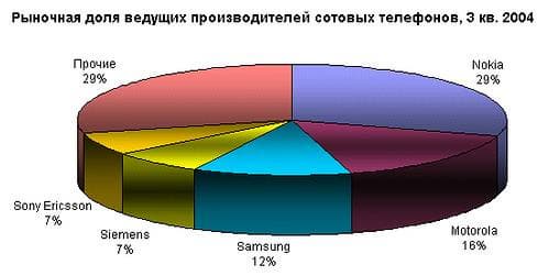 Занимающая второе место Motorola усилила свои позиции, увеличив рыночную долю с 14,5% до 15,8%, да и Samsung продолжает свое восхождение вверх, контролируя теперь 12,1% (во втором квартале на ее долю приходилось лишь 10,2% продаж телефонов). Высокие темпы роста продаж Samsung позволяют предположить, что в оставшееся до конца года время мы можем стать свидетелями интенсивной борьбы между Samsung и Motorola за второе место на рынке сотовой связи.