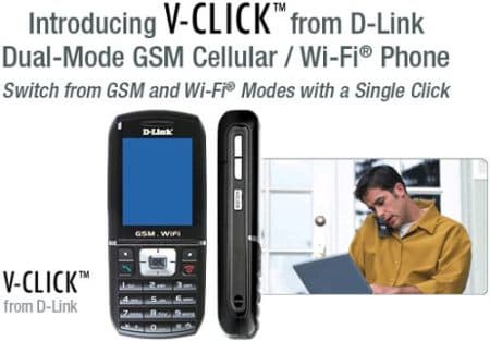 Планируемый к выходу в первом квартале 2007 года D-Link V-CLICK поддерживает сети GSM (900/1800/1900 МГц) и Wi-Fi (2,4 ГГц). Интересно, что аппарат, похоже, не поддерживает ни GPRS, ни EDGE — доступ к ресурсам интернет, электронной почте осуществляется исключительно через соединение Wi-Fi.