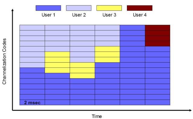 Если пользователю одновременно доступны и сеть GSM, и WCDMA, ядро UMTS будет перераспределять их в зависимости от нагрузки сетей. В тех случаях, когда одна из сетей недоступна — наиболее распространенной ситуацией является та, при которой есть сигнал GSM, но нет покрытия WCDMA, используется физический уровень GSM. Главным отличием WCDMA от GSM является то, что стандарт использует широкие поддиапазоны, в которых передается шумоподобный код (см. статью о CDMA), содержащий данные для всех абонентов. Модифицируя код, WCDMA Release 99 определяет количество трафика, выделенного под голосовую связь и данные, для разных абонентов, каждые 10 мс. С внедрением HSPA это время сокращено до 2 мс. Помимо деления на поддиапазоны, отличающее WCDMA от CDMA, в UMTS, как более высокоуровневом стандарте, предусмотрена QoS (Quality of Service) с несколькими приоритетами: