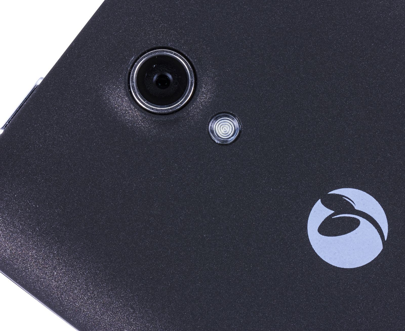 Если вернуть заднюю крышку на свое законное место, то сложится вполне знакомая картина: на тыльной поверхности смартфона друг рядом с другом расположены окошки камеры и вспышки, а также решетка вызывного динамика. Окошко камеры обрамлено хромированным ободком, односекционная светодиодная вспышка изначально готова работать в качестве фонарика (соответствующее ПО предустановлено в памяти смартфона).