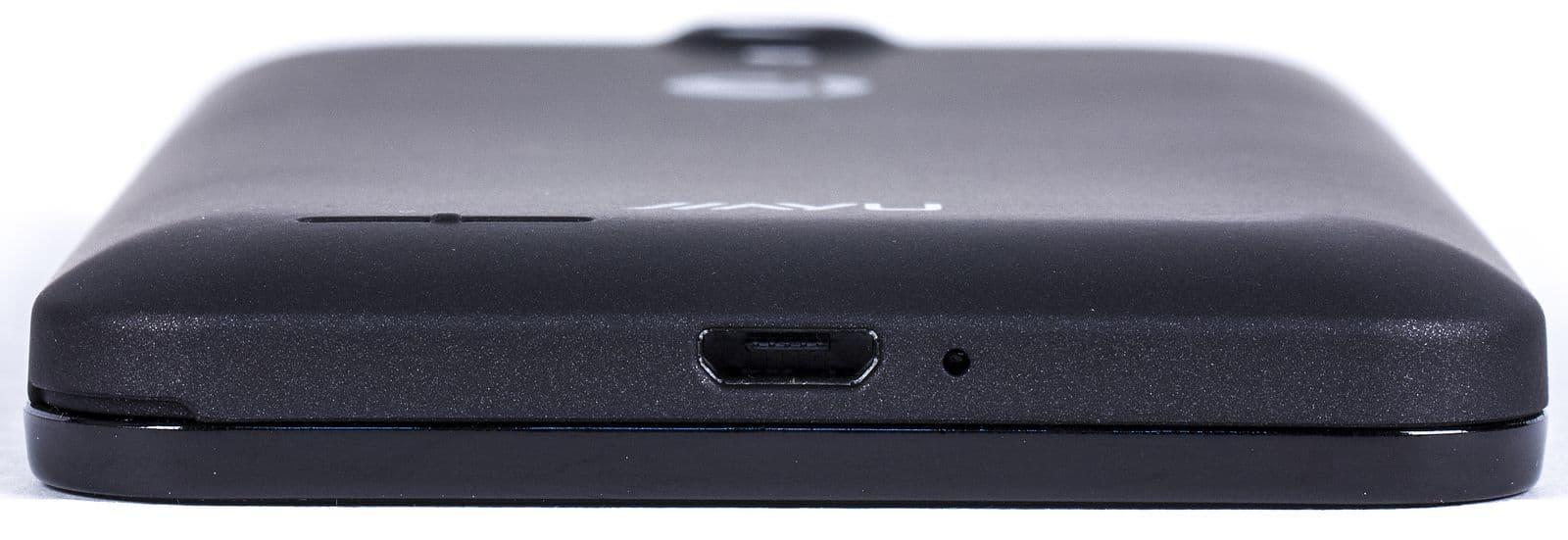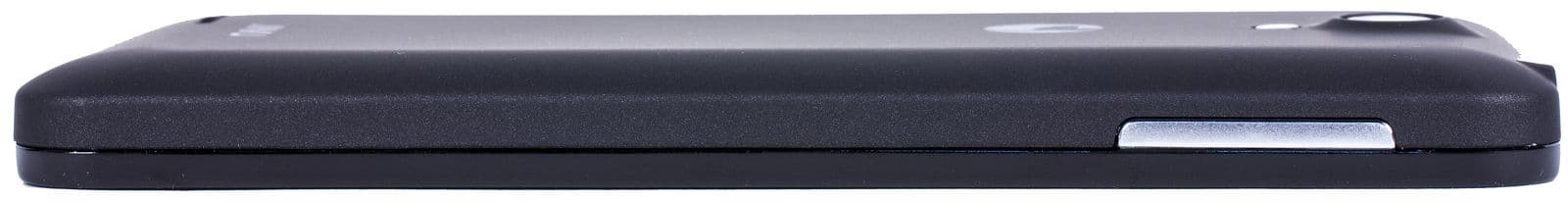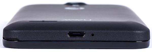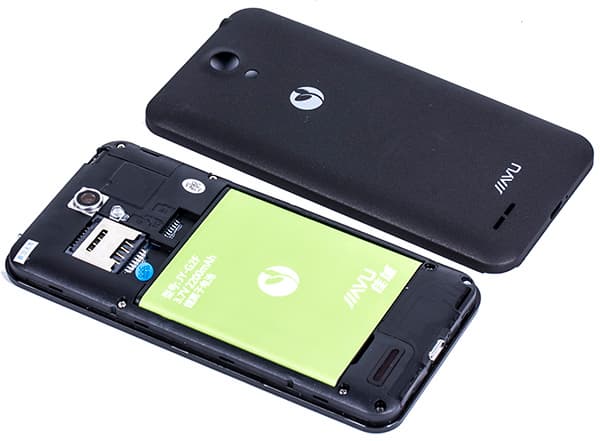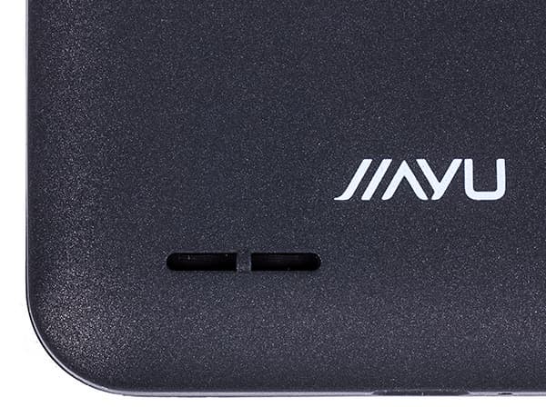 Корпус Jiayu G2F полностью выполнен из пластмассы — металла в нем нет. В который уже раз мы встречаемся со странным решением разработчиков, когда отличная эргономичность матовой и шершавой задней поверхности нивелируется скользкими глянцевыми боковыми гранями устройства. Возможно, шершавая задняя поверхность и позволяет устройству более надежно удерживаться в ладони, но поднимать-то со стола его приходится именно за эти скользкие боковые грани, что немного портит впечатление от знакомства со смартфоном.