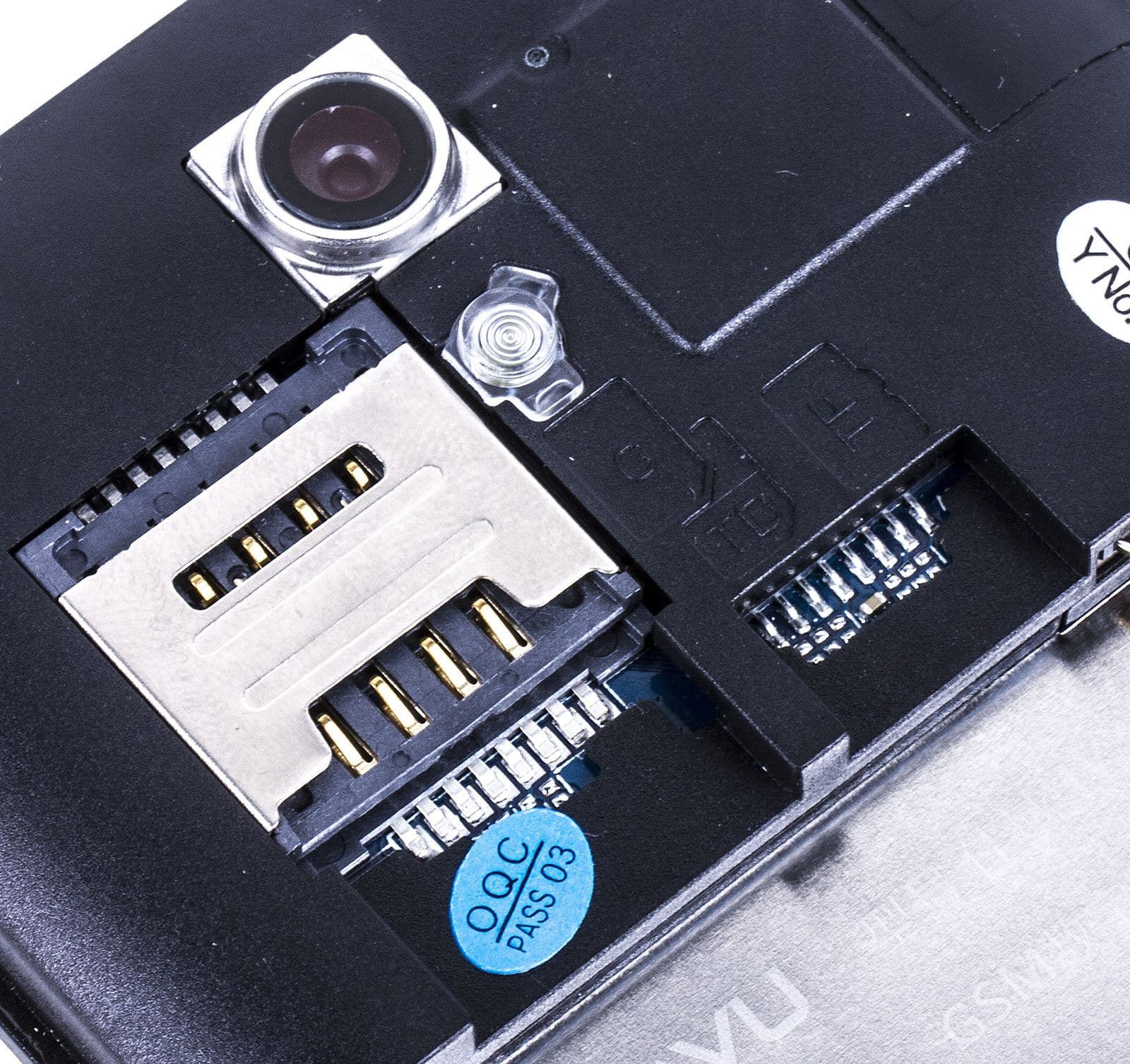 Снятие задней крышки открывает полный доступ ко всему, что под ней находится: и аккумуляторная батарея здесь оказывается съемной, и слот для карты памяти имеется. К тому же здесь можно установить две SIM-карты формата Mini-SIM, что добавляет устройству привлекательности в глазах определенной части пользователей, предпочитающих универсальность.