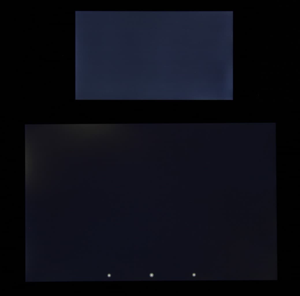 При перпендикулярном взгляде равномерность черного поля средняя, так как по краю есть несколько участков с повышенной яркостью черного: