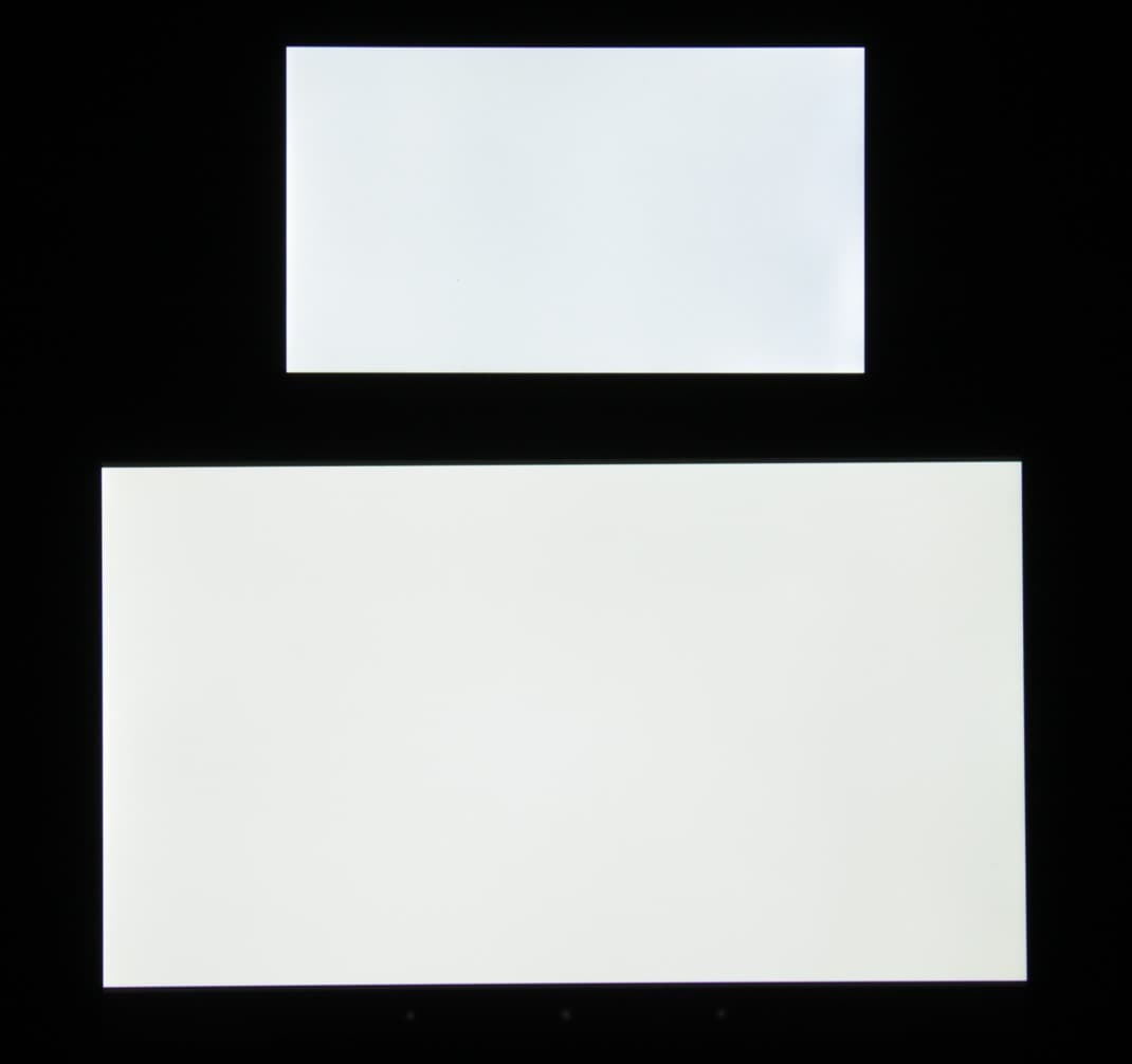 При ручном управлении яркостью и при выводе белого поля во весь экран максимальное значение яркости составило около 370 кд/м², минимальное — 45 кд/м². Максимальное значение не очень высокое, и, учитывая слабые антибликовые свойства и матовость поверхности матрицы, при ярком дневном свете изображение на экране вряд ли будет хорошо различимым. В полной темноте яркость можно понизить до комфортного уровня. Есть автоматическая регулировка яркости по датчику освещенности (находится справа от прорези фронтального громкоговорителя). В автоматическом режиме при изменении внешних условий освещенности яркость экрана как повышается, так и понижается. В полной темноте в автоматическом режиме яркость уменьшается до 16 кд/м² (читать с экрана можно), в условиях освещенного искусственным светом офиса (примерно 400 лк) яркость устанавливается на 155 кд/м² (в самый раз), в ярко освещенном окружении (соответствует освещению ясным днем вне помещения, но без прямого солнечного света — 20000 лк или немного больше) повышается до 370 кд/м² (до максимума, что и ожидалось). В итоге функция автоподстройки яркости работает вполне адекватно. На любом уровне яркости модуляция подсветки практически отсутствует, поэтому нет и никакого мерцания экрана.