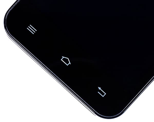 В нижней части под экраном расположен ряд привычных аппаратных кнопок, естественно сенсорных. Кнопки имеют пиктограммы, выполненные серебристой краской, но не имеют никакой подсветки. Это чрезвычайно неудобно в условиях плохого освещения, но это издержки, сопутствующие бюджетному уровню устройств подобного класса.