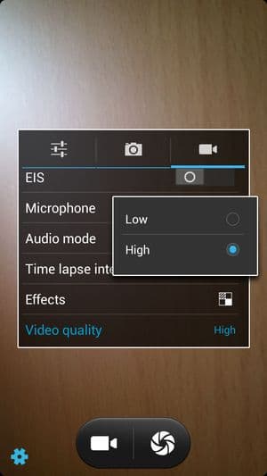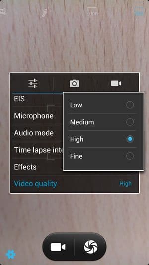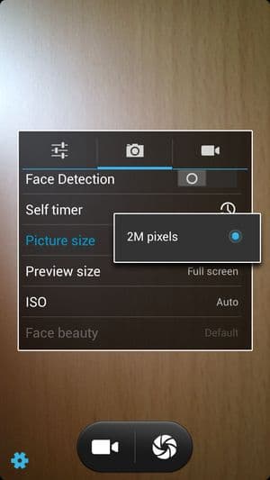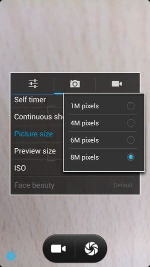 Список опций камеры классический: меню, состоящее из трех вкладок, всплывает по нажатию на специальную иконку прямо поверх экрана видоискателя. Прорисовка надписей четкая и понятная, меню имеет как горизонтальное, так и вертикальное отображение. Аппаратная кнопка громкости на боку в режиме съемки продолжает отвечать за звук, так что спуск затвора здесь можно осуществить лишь прикосновением пальца к экрану.