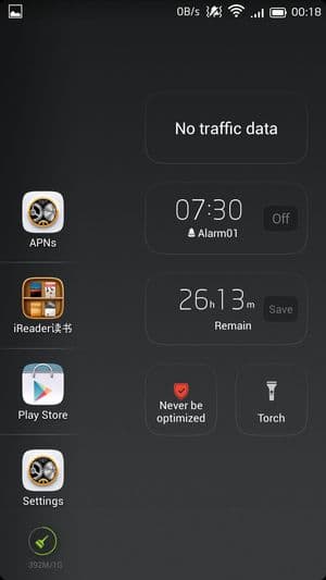 Что касается внутреннего обустройства данного интерфейса, то одной из самых удобных функций здесь является дополнительное всплывающее меню, которое можно вызвать на рабочий экран боковым взмахом слева направо. В этом удобном меню помимо традиционного списка последних запущенных программ, который можно очистить нажатием одной кнопки, имеется также несколько особо выделенных индикаторов для быстрого доступа к функциям будильника, режимам энергосбережения и даже фонарику. Это меню также можно вызвать более «традиционным» способом — долгим нажатием на центральную аппаратную кнопку под экраном.