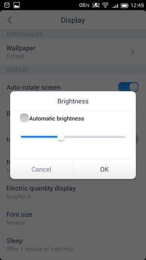 Яркость дисплея имеет как ручную, так и автоматическую регулировку, последняя основывается на работе датчика освещения. Имеется у смартфона и датчик приближения, который блокирует экран при поднесении смартфона к уху. Технология мультитач позволяет обрабатывать 5 одновременных прикосновений. Экран смартфона Jiayu G2F не чувствителен к прикосновению в перчатках или мокрыми пальцами. На ярком солнце экран остается читаемым.