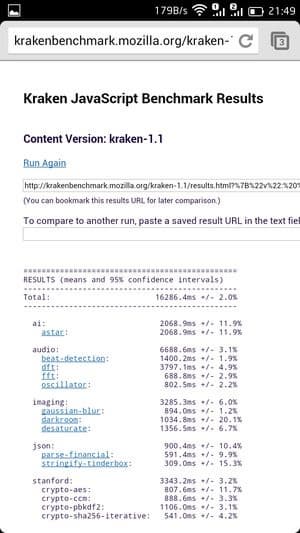 Что касается бенчмарков для оценки скорости движка javascript, то стоит всегда делать скидку на то, что в них результаты существенно зависят от браузера, в котором запускаются, так что сравнение может быть истинно корректным только на одинаковых ОС и браузерах, а такая возможность имеется при тестировании не всегда. В случае с ОС Android мы всегда стараемся использовать Google Chrome.