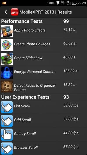 | Mobile Xprt 2013 (больше — лучше) | 99/93 | 101/97 | 118/101 | 97/91 | 116/47 |