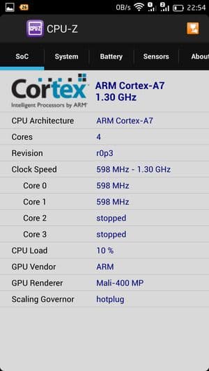 - SoC MediaTek MT6582, 1,3 ГГц, 4 ядра ARM Cortex-A7