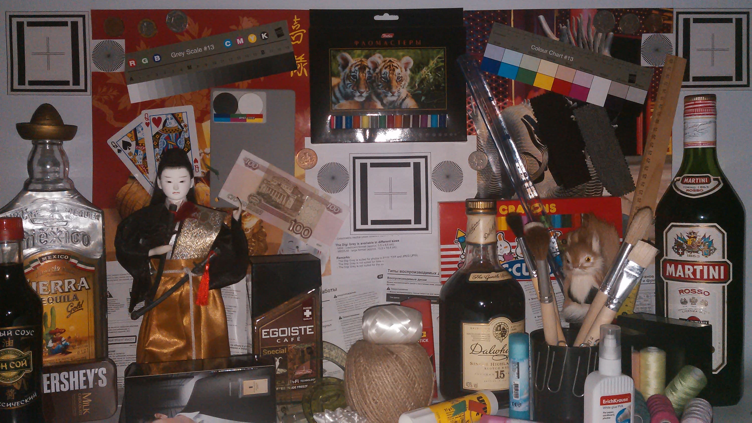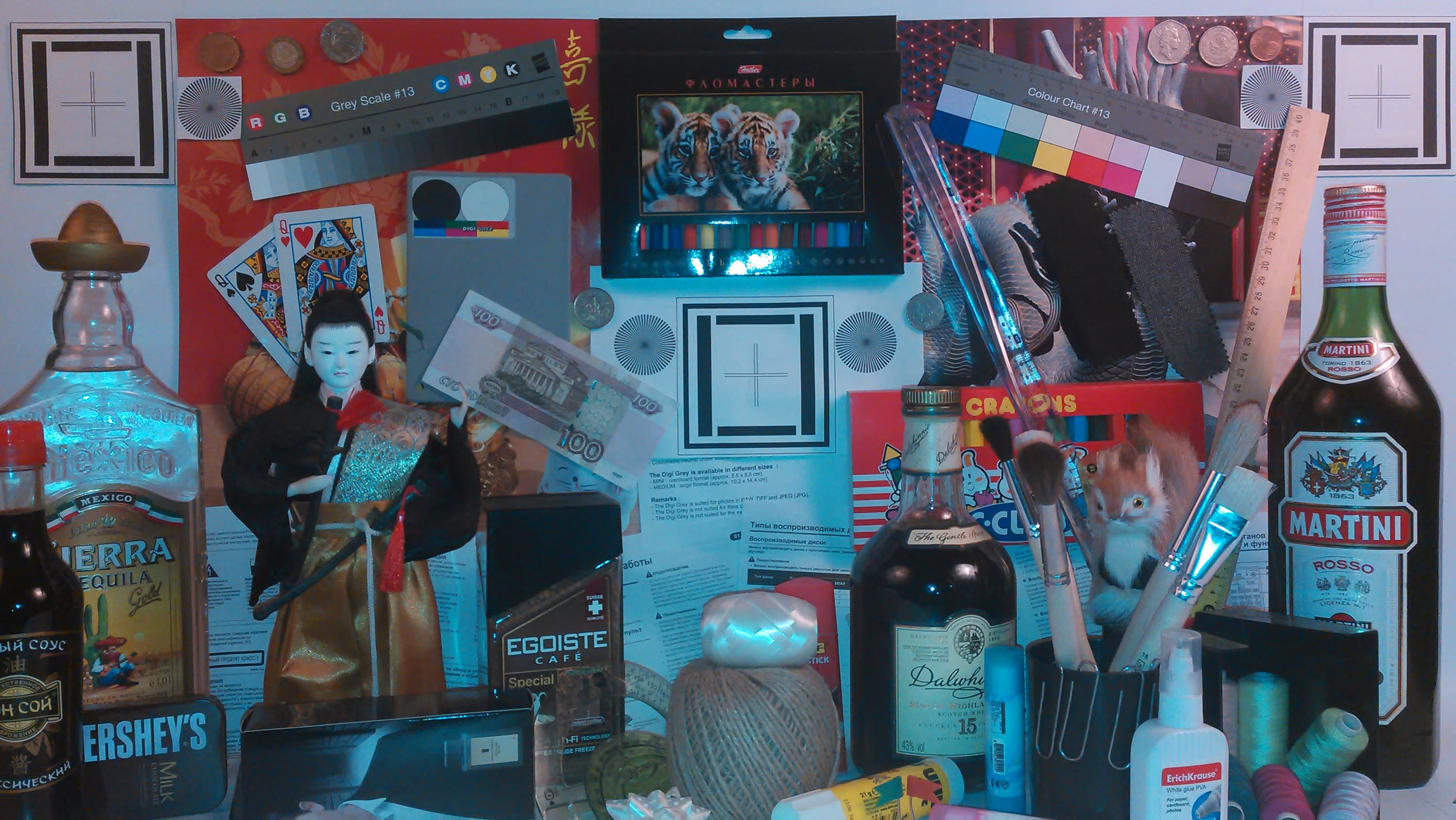 Равномерность хорошая, цветовой тон точно отличается от тона экрана Nexus 7 (при фотографировании цветовой баланс принудительно установлен на 6500 К). И тестовая картинка: