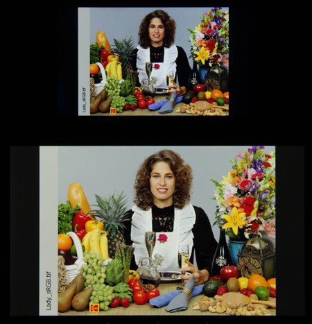В итоге визуально цвета имеют естественную насыщенность. Баланс оттенков на шкале серого средний, так как цветовая температура заметно выше стандартных 6500 К и отклонение от спектра абсолютно черного тела (ΔE) местами выше 10, что даже для потребительского устройства считается не очень хорошим показателем. При этом ΔE сильно изменяется от оттенка к оттенку, что отрицательно сказывается на визуальной оценке цветового баланса. (Темные области шкалы серого можно не учитывать, так как там баланс цветов не имеет большого значения, да и погрешность измерений цветовых характеристик на низкой яркости большая.)