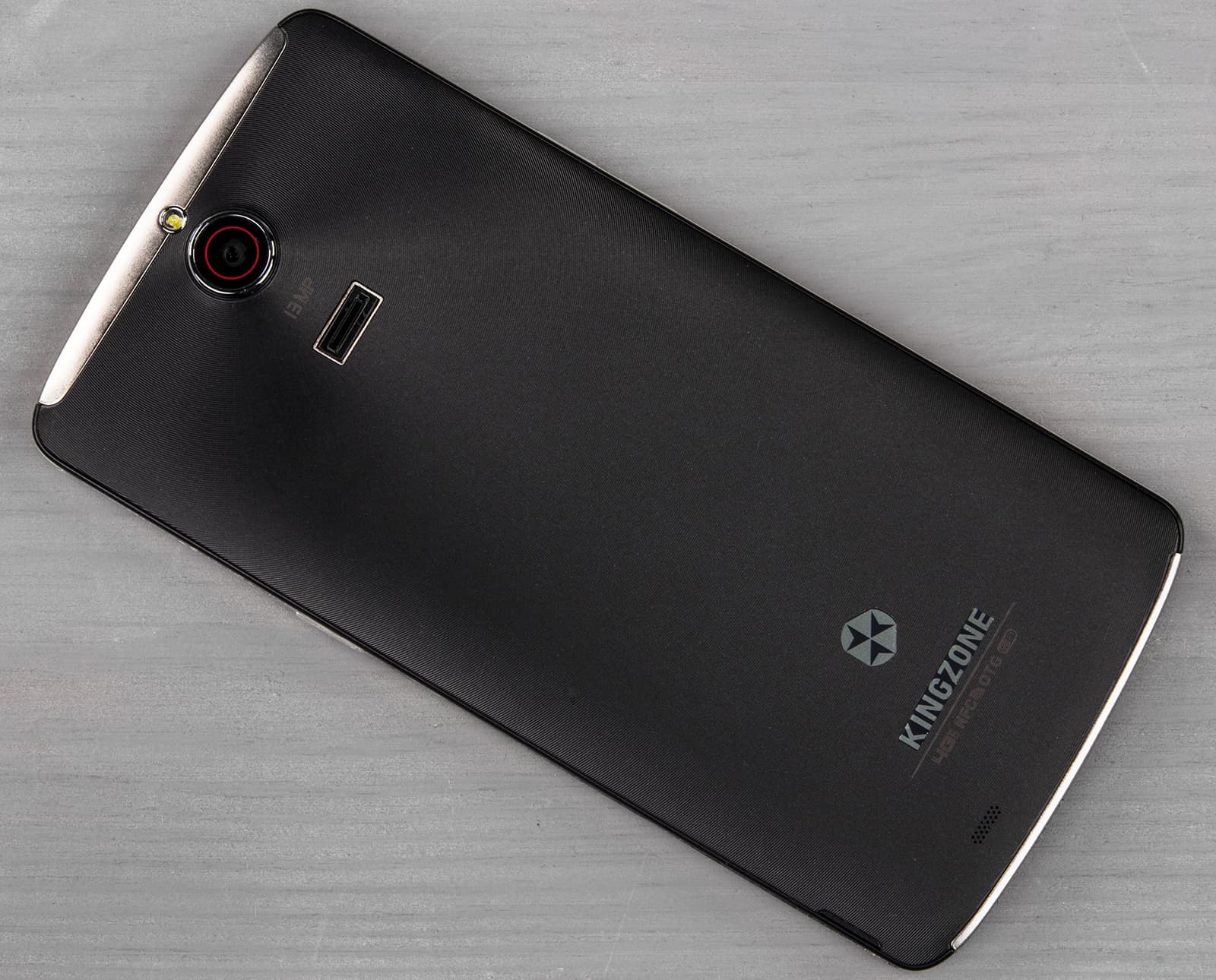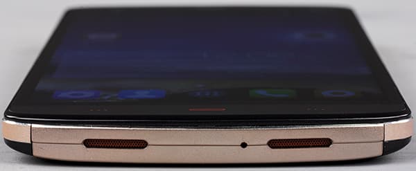 Однако, это всего лишь бутафория: никаких стереодинамиков в аппарате Kingzone Z1 нет, да и звук выходит вовсе не через эти красивые торцевые щели, а сквозь малюсенькую едва заметную решеточку, образованную из нескольких микроскопических отверстий, расположенных, конечно же, на тыльной стороне корпуса. В итоге, и звучит смартфон совершенно некачественно, и никакого стереоэффекта здесь, естественно, не наблюдается.