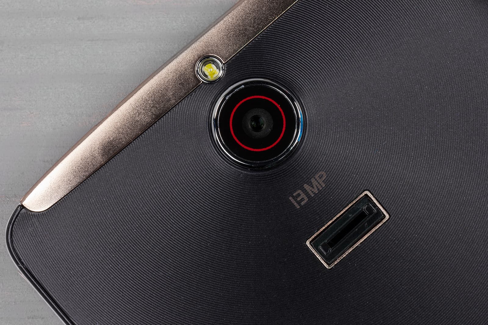 На внешней стороне задней части смартфона привычно можно найти круглое окошко камеры и одинарный глазок светодиодной вспышки, оба элемента обрамлены блестящими металлизированными ободками. Модуль камеры, надо заметить, выпирает за пределы поверхности приблизительно на миллиметр. Вспышка способна работать в качестве фонарика, для этого среди предустановленных приложений имеется соответствующая программа.