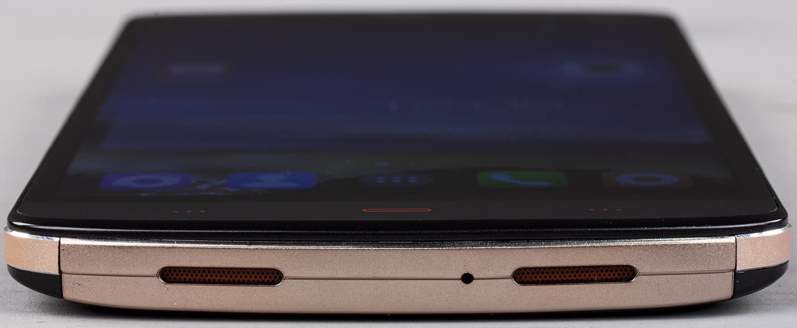 Спускаясь еще ниже можно наткнуться на очередное разочарование. Лукавый китайский рукоделец врезал в нижний торец две красивых решетки для стереодинамиков, забранные даже выкрашенными в красный цвет сеточками, что придает дизайну аппарата больше сложности и даже какой-то красочности.