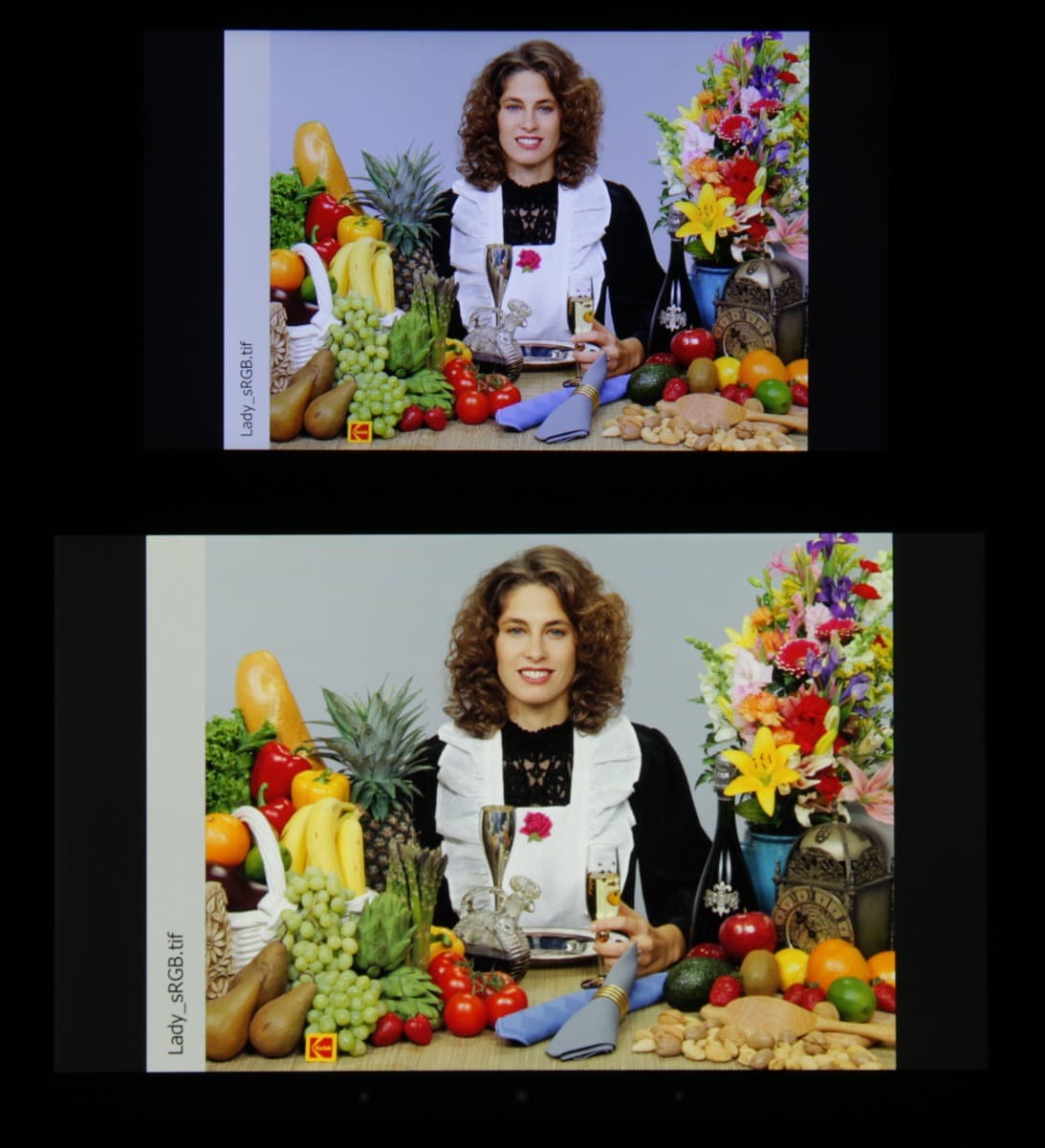 Отметим хорошую равномерность яркости и цветового тона белого поля. И тестовая картинка: