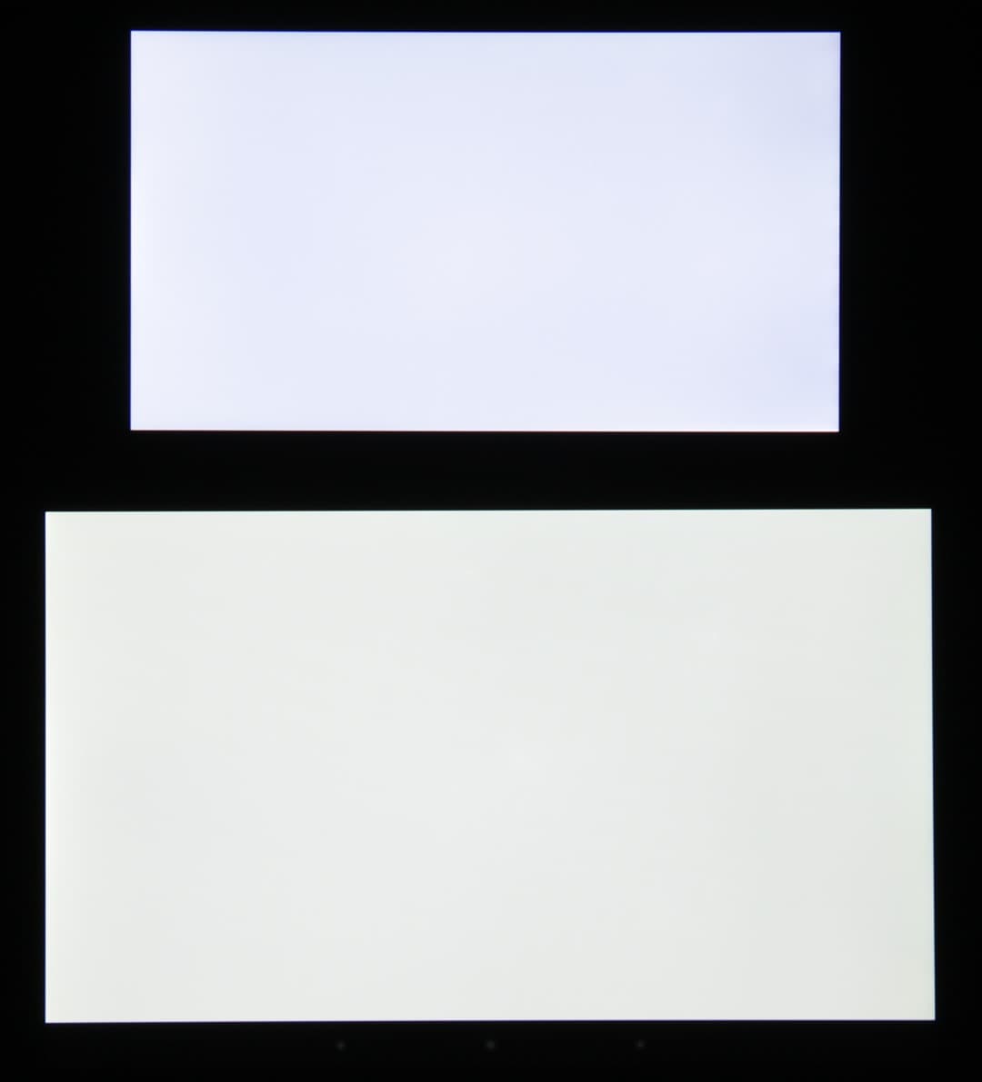 Экран имеет хорошие углы обзора без значительного сдвига цветов даже при больших отклонениях взгляда от перпендикуляра к экрану и без инвертирования (кроме самых-самых темных при отклонении взгляда по одной диагонали) оттенков. Для сравнения приведем фотографии, на которых на экраны Kingzone Z1 и Nexus 7 выведены одинаковые изображения, при этом яркость экранов изначально установлена примерно на 200 кд/м², а цветовой баланс на фотоаппарате принудительно переключен на 6500 К. Перпендикулярно к экранам белое поле: