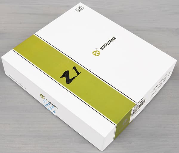 Kingzone Z1 поставляется в продажу в крупной плоской грубоватой по виду квадратной коробке, выполненной из твердого белого картона. Упаковка проста по оформлению — обычная картонка, выполняющая лишь утилитарное предназначение. Внутри все аксессуары разложены на дне коробки, разделенном на две части картонной перегородкой.