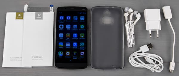 Комплект состоит из компактного зарядного устройства (5 В, 1 А), соединительного кабеля Micro-USB, проводной стереогарнитуры с прорезиненными амбушюрами внутриканального типа, а также защитной пленки на экран и даже полупрозрачного полиэтиленового защитного чехла. Помимо этого, в комплект вложили также переходник OTG, что бывает крайне редко. В целом, комплектацию смартфона можно с полным правом назвать богатой даже для китайских производителей, хотя большинство из них традиционно не скупится на аксессуары.