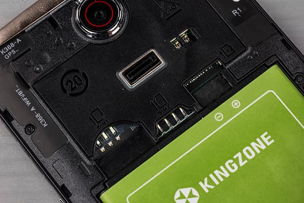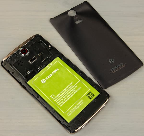 Корпус Kingzone Z1 выполнен в виде моноблока со съемной задней крышкой, она очень гибкая за счет своего чрезвычайно тонкого профиля, достаточно легко снимается со своих пластиковых защелок. При этом, крышка вполне надежно удерживается на корпусе, при сжатии никаких скрипов и хруста не слышно, корпус создает впечатление надежной монолитности, с этим проблем нет.