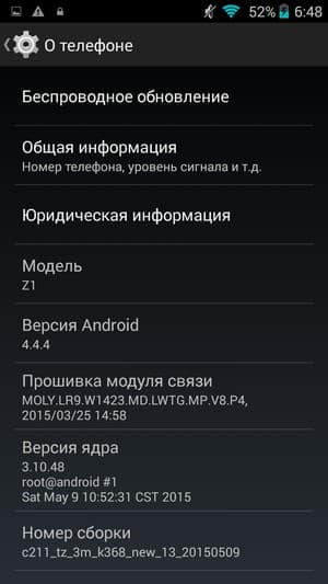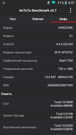 Основные характеристики Kingzone Z1