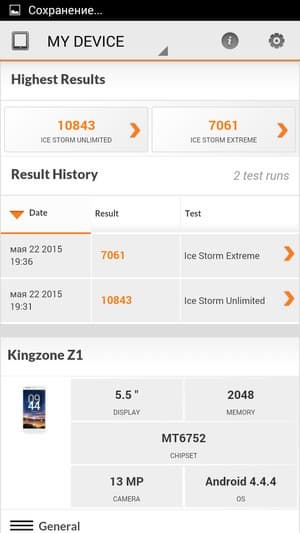По результатам тестирования новая платформа показала очень хорошие результаты. Производительность у смартфона оказалась гораздо выше привычного среднего уровня, она уже вплотную подбирается к уровню флагманскому. Это весьма показательно: новая SoC MediaTek MT6752 не рассчитана на использование в дорогих топовых смартфонах, она предназначена для аппаратов среднего класса, и если новые середнячки поднимаются теперь до таких высот, то и от будущего поколения новых топовых SoC стоит ожидать значительного прироста производительности в самое ближайшее время. В итоге, по результатам тестирования можно констатировать, что возможностей смартфона Kingzone Z1 еще долго будет хватать для выполнения большинства задач, в том числе и требовательных игр. Это тот самый момент, когда производительность недорогих аппаратных платформ среднего класса поднялась до небывалых ранее высот, а большинство приложений при этом еще не успели задрать свои требования настолько, чтобы их не смогли удовлетворить возможности новых платформ среднего класса.