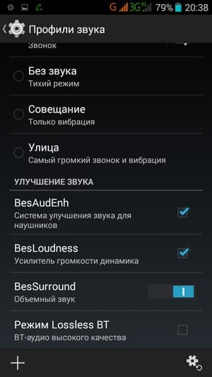 Для управления качеством звучания имеется возможность задействовать знакомые усилитель громкости динамика BesLoudness и систему улучшения звука для наушников BesAudEnh. Для воспроизведения мелодий в смартфоне используется штатный аудиоплеер с возможностью выбора из нескольких предустановленных значений эквалайзера.